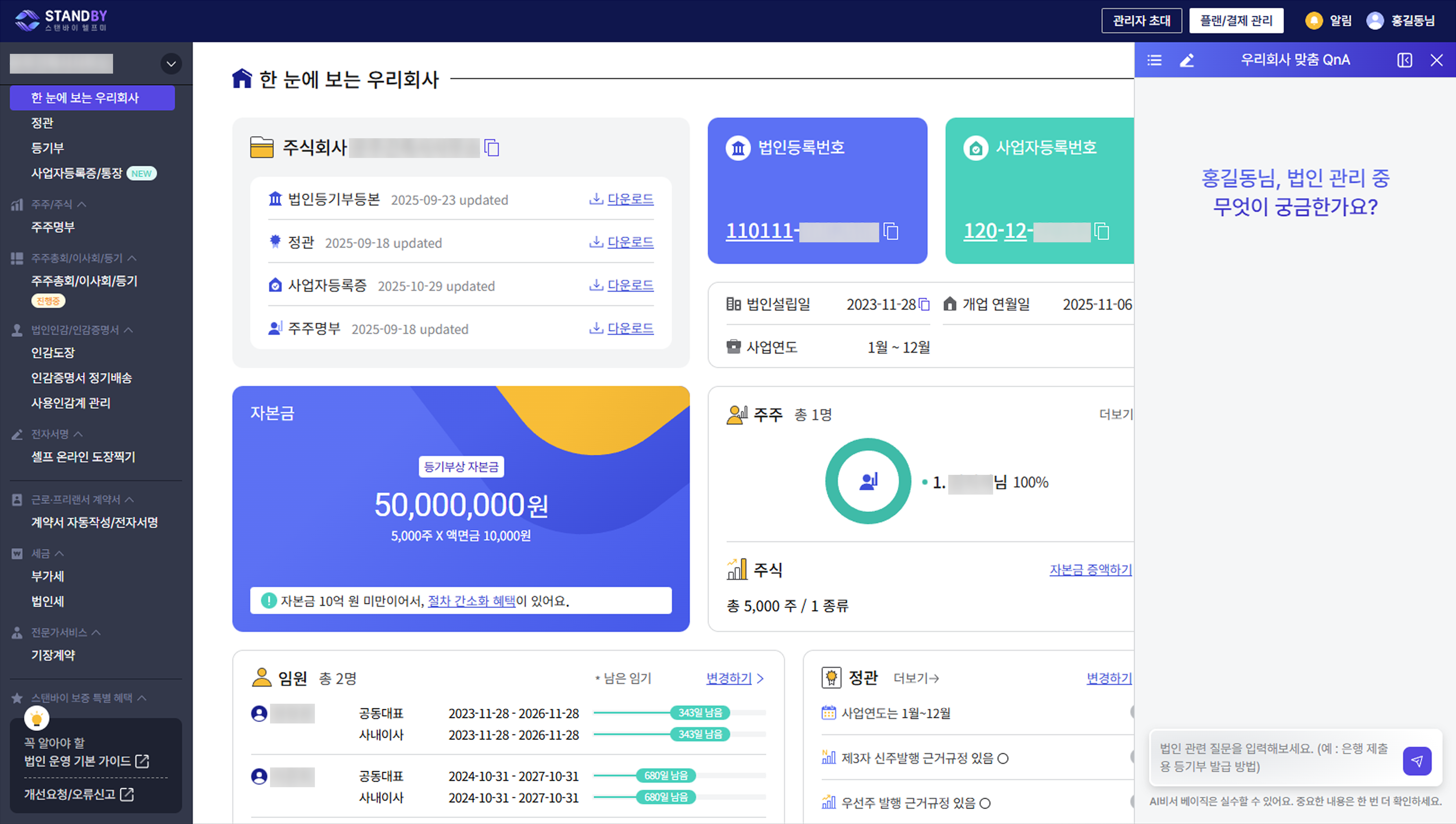 아직은 베이직 단계로 법인 운영에 대한 질의응답이 가능하지만, 빠른 시일 내에 내 옆에 비서가 있듯이 법인을 관리할 수 있게될 거에요.