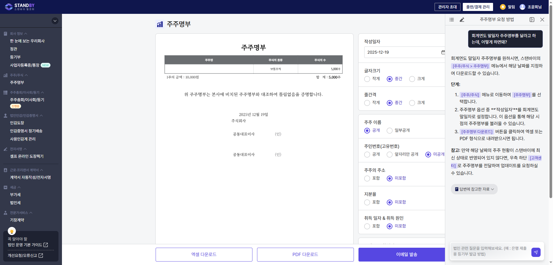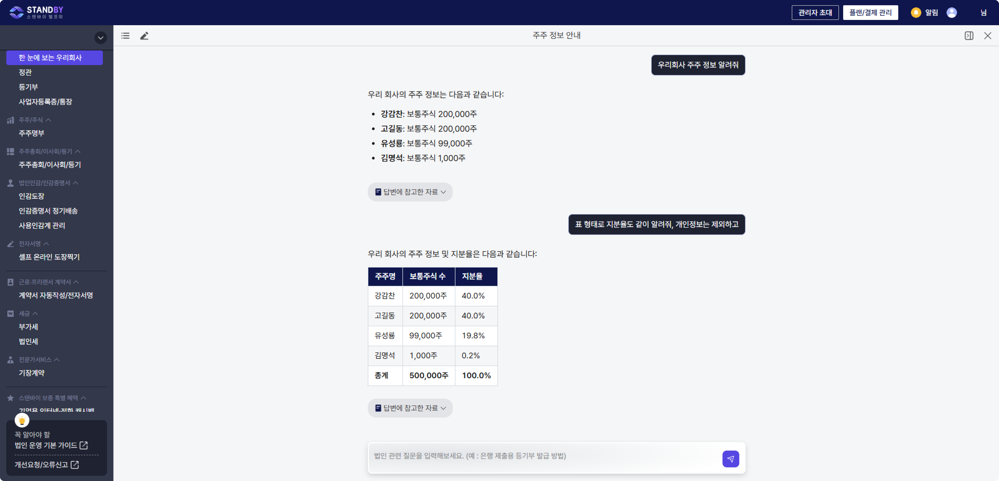 이제 법인 운영이 막막할때는, 스탠바이 AI비서에게 기다림없이 물어보세요.